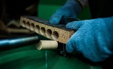 Depois, as pranchas de cortiça são cortadas (rabaneadas) em tiras com uma largura ligeiramente superior ao comprimento da rolha a fabricar.